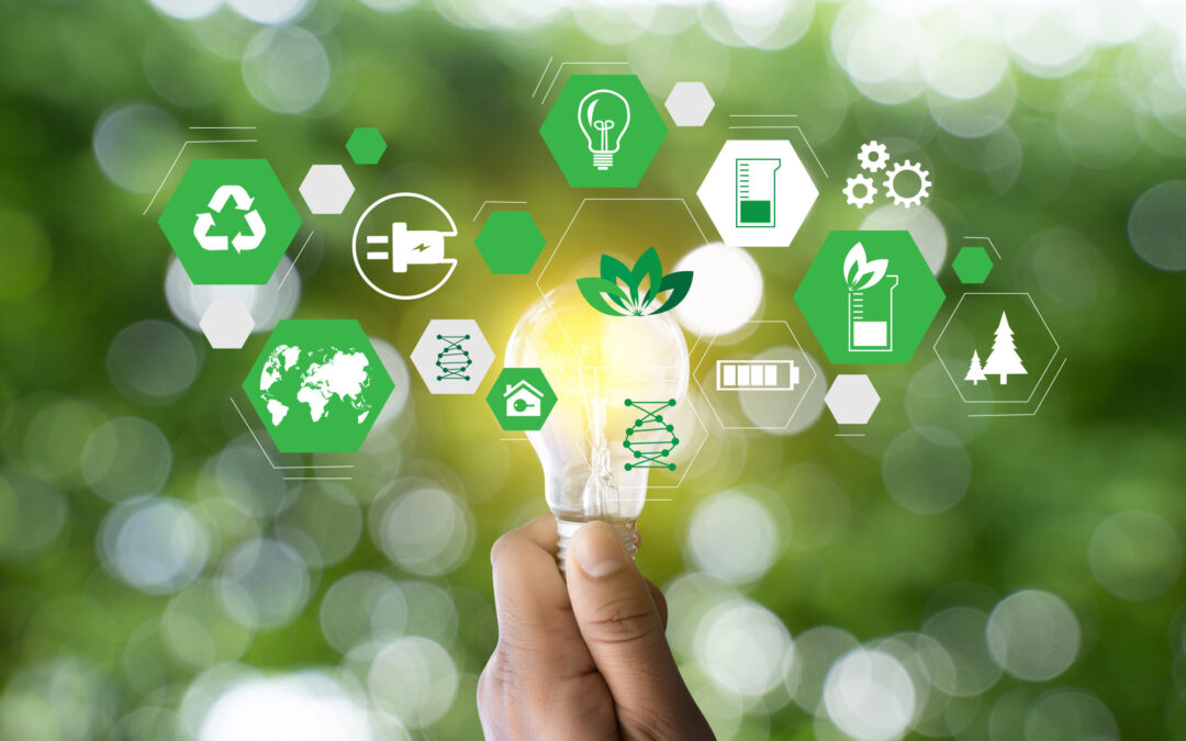 Kuva esittää kestävän kehityksen ja vihreän teknologian merkitystä yritystapahtumien suunnittelussa. Taustalla näkyy luonnon vihreyttä, mikä symboloi ekologisia arvoja, kun taas valonlähde kuvastaa innovatiivisia ratkaisuja ympäristöystävällisempien tapahtumien järjestämiseksi. Tämä kuva sopii täydellisesti artikkeliin, joka käsittelee kestävän kehityksen käytäntöjä tapahtuma-alalla.